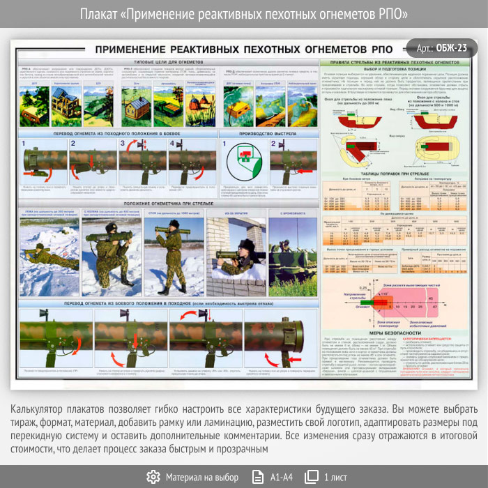 Плакат «Применение реактивных пехотных огнеметов РПО» (ОБЖ-23, 1 лист) в Нижнекамске купить