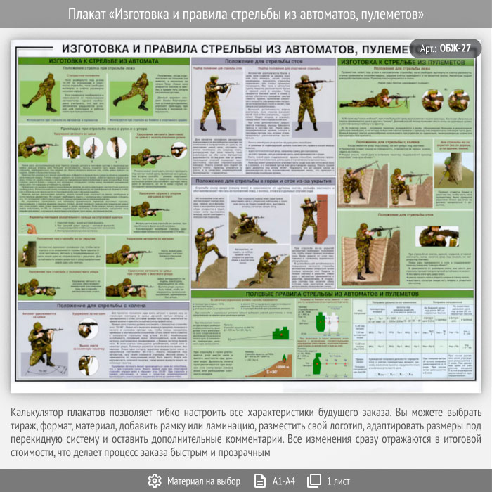 Плакат «Изготовка и правила стрельбы из автоматов, пулеметов» (ОБЖ-27, 1 лист) в Нижнекамске купить