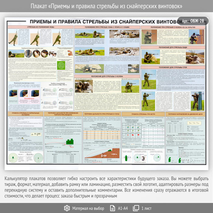 Плакат «Приемы и правила стрельбы из снайперских винтовок» (ОБЖ-28, 1 лист) в Нижнекамске купить