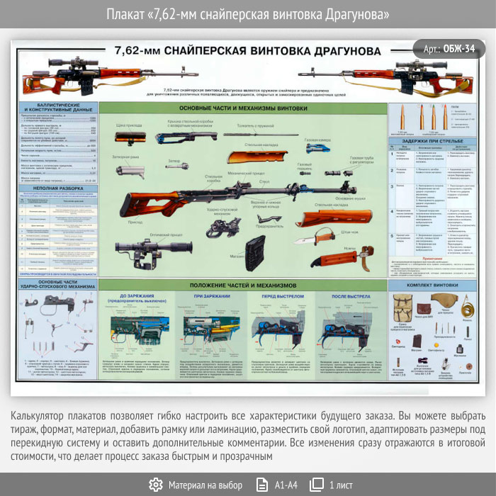 Плакат «7,62-мм снайперская винтовка Драгунова» (ОБЖ-34, 1 лист) в Нижнекамске купить