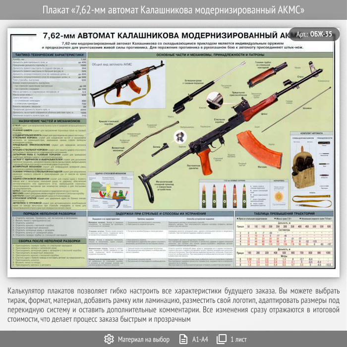 Плакат «7,62-мм автомат Калашникова модернизированный АКМС» (ОБЖ-35, 1 лист) в Нижнекамске купить