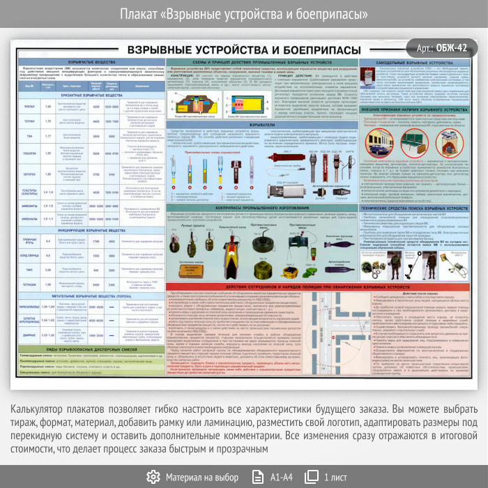 Плакат «Взрывные устройства и боеприпасы» (ОБЖ-42, 1 лист) в Нижнекамске купить