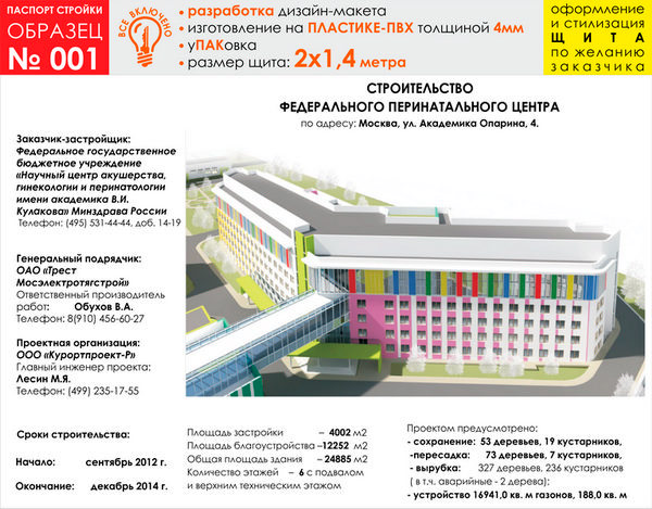 Паспорт стройки, образец № 1 (пластик 4 мм, 2000х1400 cм) в Нижнекамске купить