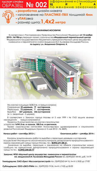 Паспорт стройки, образец № 2 (пластик 4 мм, 1400х2000 cм) в Нижнекамске купить