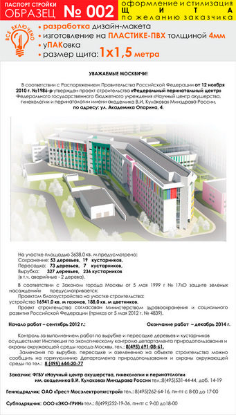 Паспорт стройки, образец № 2 (пластик 4 мм, 1000х1500 cм) в Нижнекамске купить