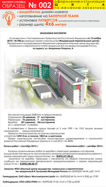 Паспорт стройки, образец № 2 (баннерная ткань, 4000х6000 см) в Нижнекамске купить