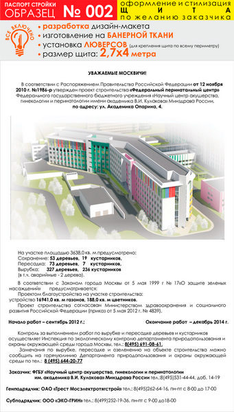 Паспорт стройки, образец № 2 (баннерная ткань, 2700х4000 см) в Нижнекамске купить