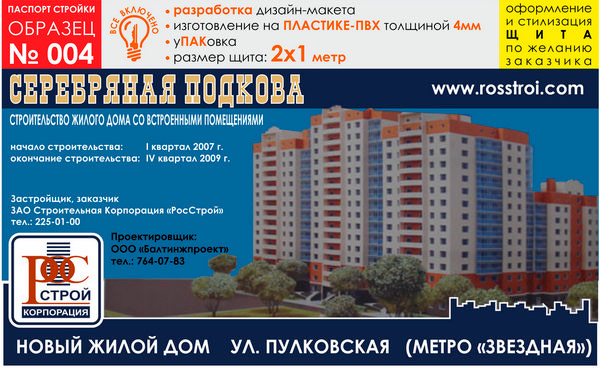 Паспорт стройки, образец № 4 (пластик 4 мм, 2000х1000 cм) в Нижнекамске купить