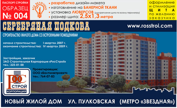 Паспорт стройки, образец № 4 (баннерная ткань, 2500х1300 cм) в Нижнекамске купить
