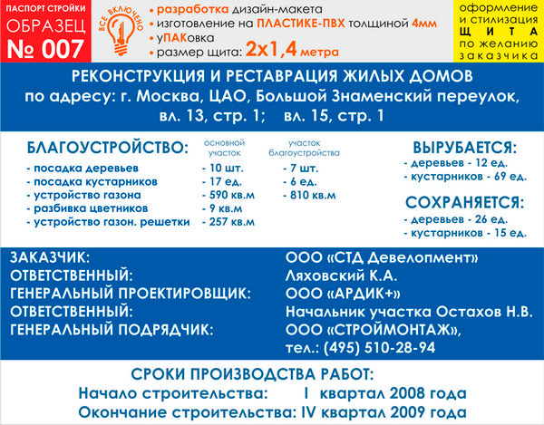 Паспорт стройки, образец № 7 (пластик 4 мм, 2000х1400 cм) в Нижнекамске купить