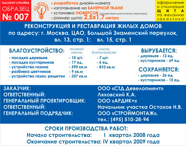 Паспорт стройки, образец № 7 (баннерная ткань, 2500х1700 cм) в Нижнекамске купить