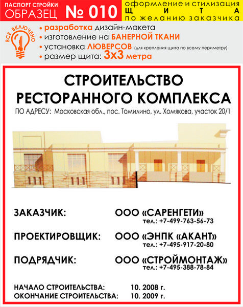 Паспорт стройки, образец № 10 (баннерная ткань, 3000х3000 cм) в Нижнекамске купить