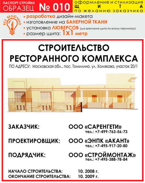 Паспорт стройки, образец № 10 (баннерная ткань, 1000х1000 cм) в Нижнекамске купить