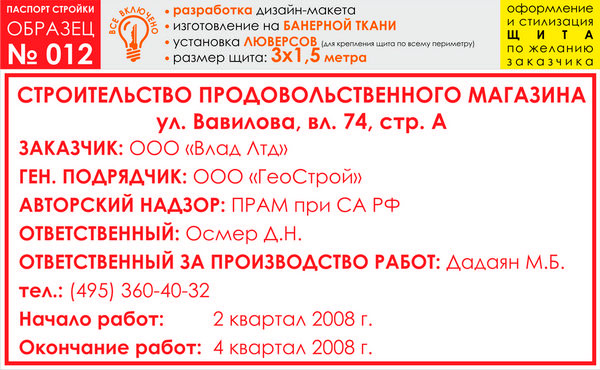 Паспорт стройки, образец № 12 (баннерная ткань, 3000х1500 cм) в Нижнекамске купить