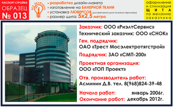 Паспорт стройки, образец № 13 (баннерная ткань, 5000х2500 cм) в Нижнекамске купить