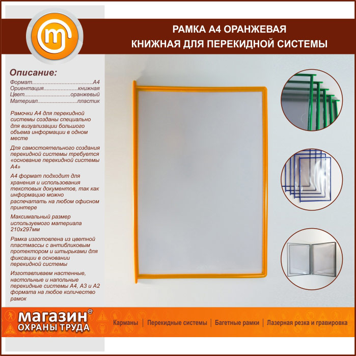 Рамка А4 оранжевая книжная в Нижнекамске купить