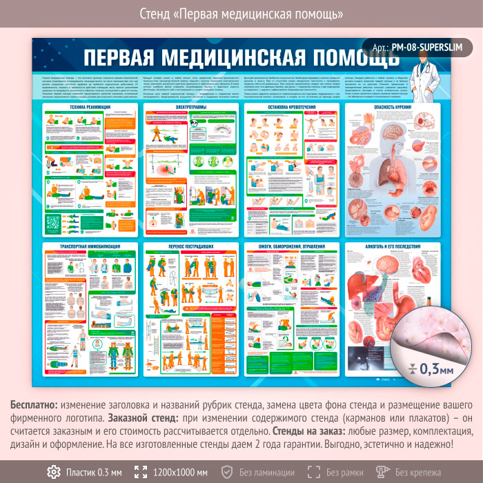 Стенд «Первая медицинская помощь» (PM-08-SUPERSLIM) в Нижнекамске купить