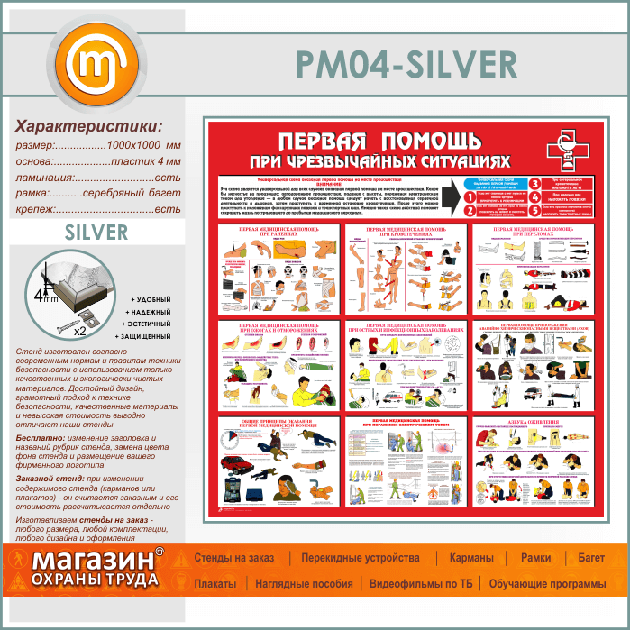 Стенд «Первая помощь при чрезвычайных ситуациях» (PM-04-SILVER) в Нижнекамске купить