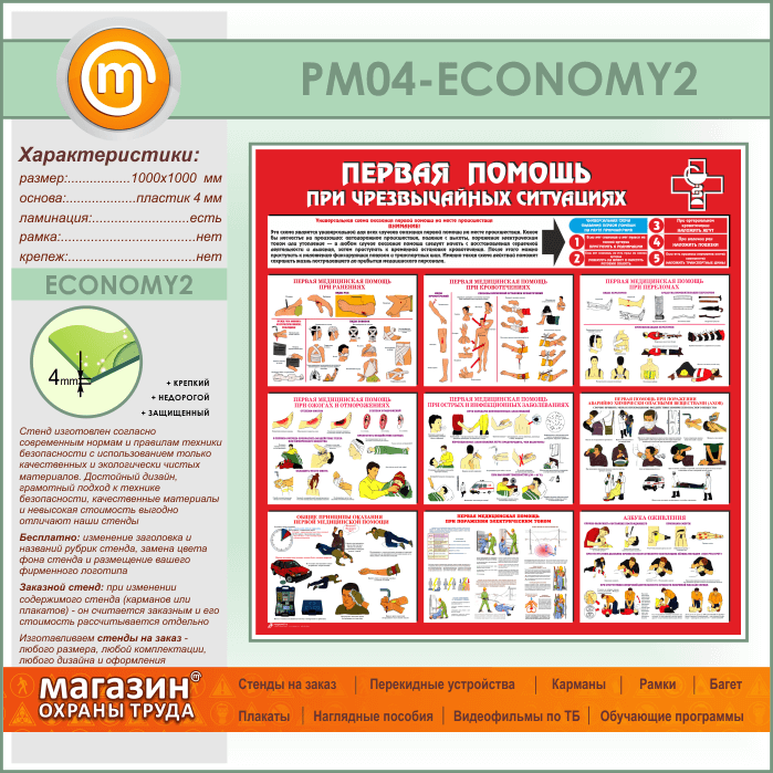 Стенд «Первая помощь при чрезвычайных ситуациях» (PM-04-ECONOMY2) в Нижнекамске купить