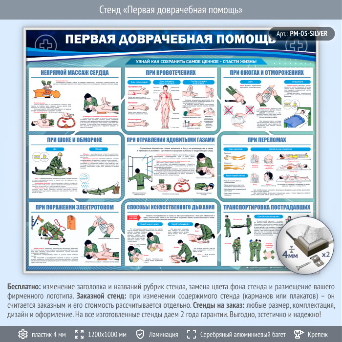 Стенд «Первая доврачебная помощь» (PM-05-SILVER) в Нижнекамске купить