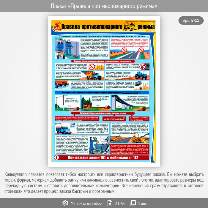 Плакат «Правила противопожарного режима» (В-11, 1 лист)