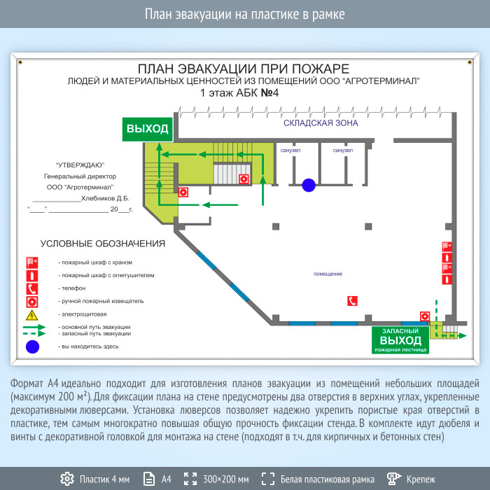 План эвакуации на пластике в рамке (А4 формат)