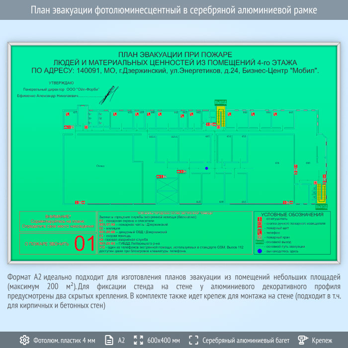 План эвакуации фотолюминесцентный в серебряной алюминиевой рамке (А2 формат) в Нижнекамске купить