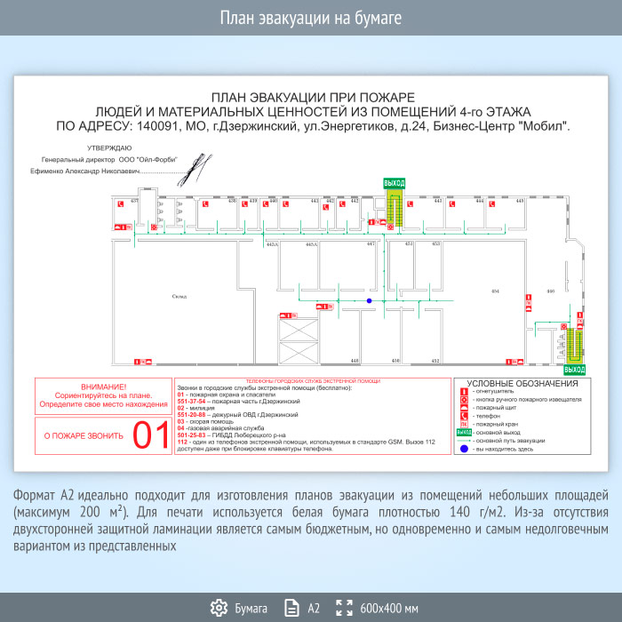План эвакуации на бумаге (А2 формат) в Нижнекамске купить
