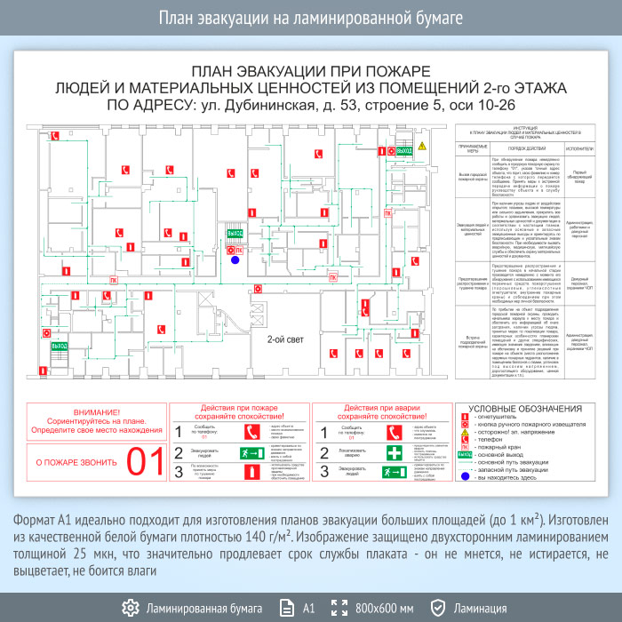 План эвакуации на ламинированной бумаге (А1 формат) в Нижнекамске купить