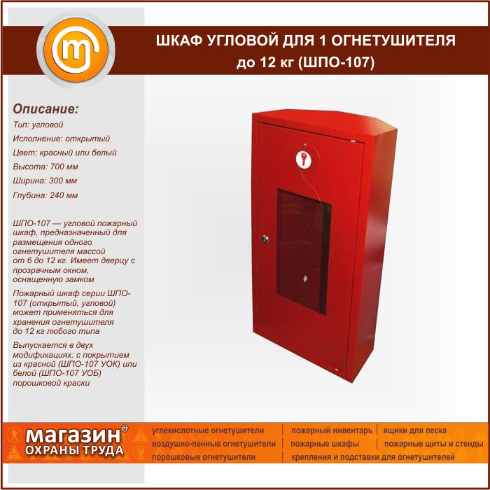 Шкаф пожарный ШПО-107 угловой для 1 огнетушителя до 12 кг в Нижнекамске купить