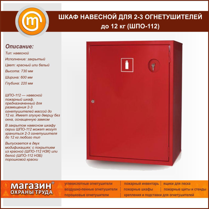 Шкаф пожарный ШПО-112 навесной для 2-3 огнетушителей до 12 кг в Нижнекамске купить