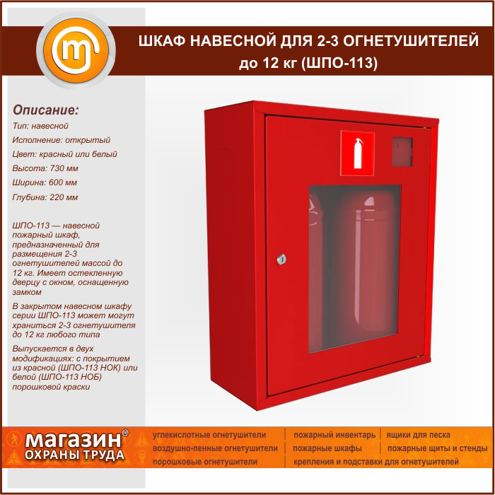 Шкаф пожарный ШПО-113 навесной для 2-3 огнетушителей до 12 кг в Нижнекамске купить
