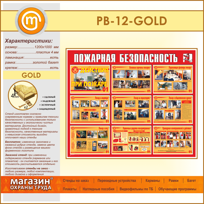Стенд «Пожарная безопасность. Действия при пожаре» (PB-12-GOLD) в Нижнекамске купить