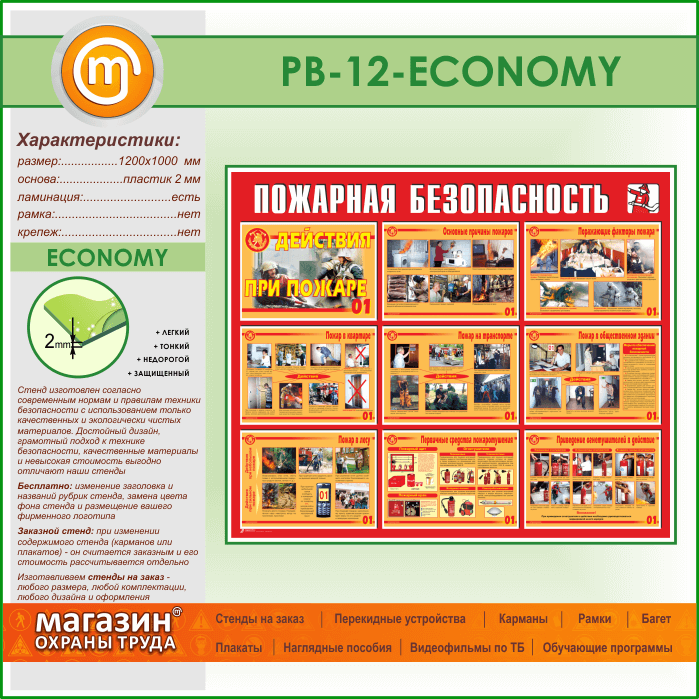 Стенд «Пожарная безопасность. Действия при пожаре» (PB-12-ECONOMY) в Нижнекамске купить