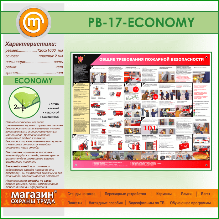 Стенд «Общие требования пожарной безопасности» (PB-17-ECONOMY) в Нижнекамске купить