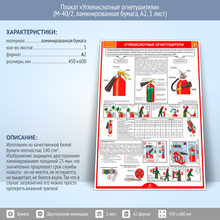 Плакат «Углекислотные огнетушители» (М-40/2, ламинированная бумага, А2, 1 лист) в Нижнекамске купить