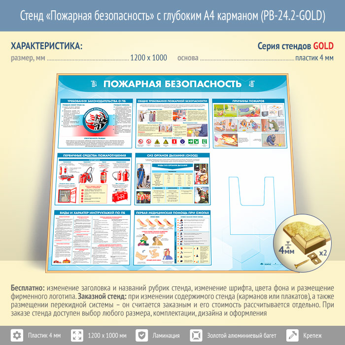 Стенд «Пожарная безопасность» с глубоким А4 карманом (PB-24.2-GOLD) в Нижнекамске купить