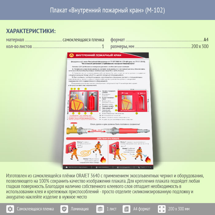 Плакат «Внутренний пожарный кран» (М-103, самоклеящаяся пленка, А4, 1 лист) в Нижнекамске купить