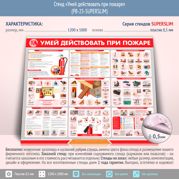 Стенд «Умей действовать при пожаре» (PB-25-SUPERSLIM) в Нижнекамске купить