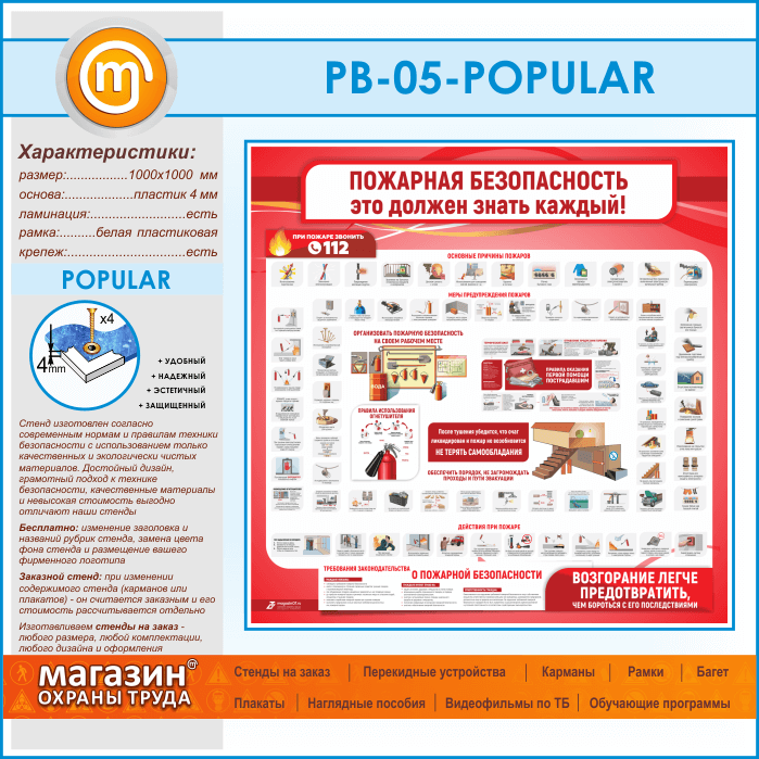 Стенд «Пожарная безопасность. Это должен знать каждый» (PB-05-POPULAR) в Нижнекамске купить