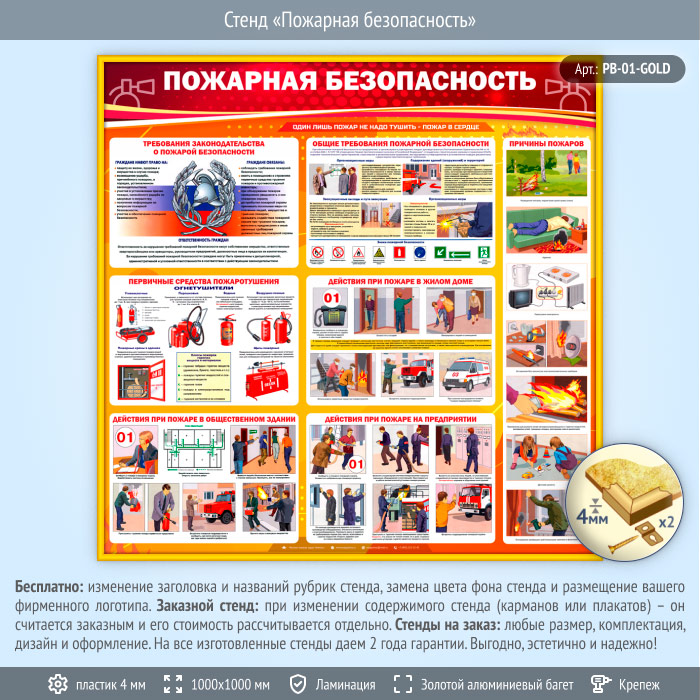Стенд «Пожарная безопасность» (PB-01-GOLD) в Нижнекамске купить
