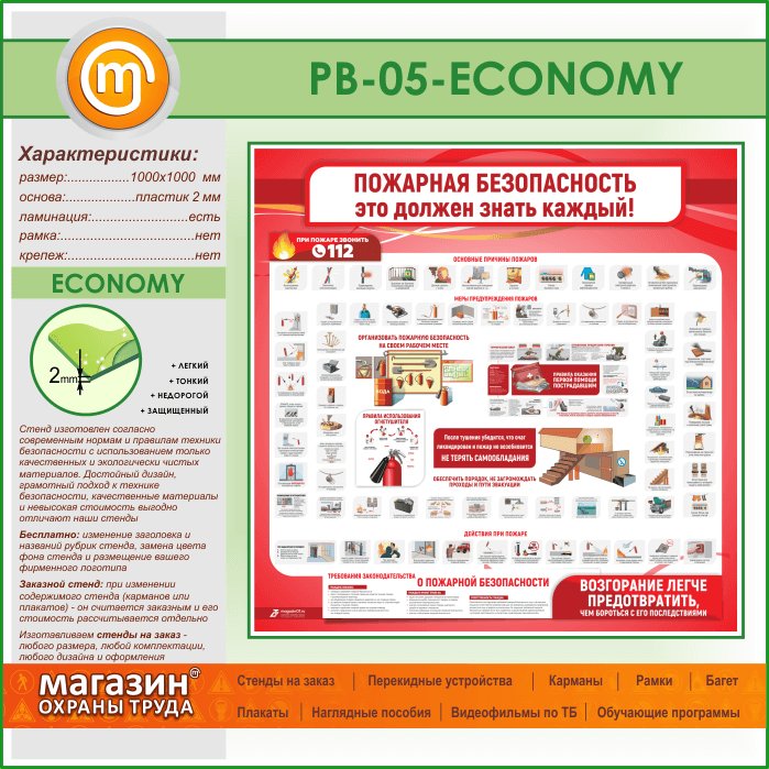 Стенд «Пожарная безопасность. Это должен знать каждый» (PB-05-ECONOMY) в Нижнекамске купить