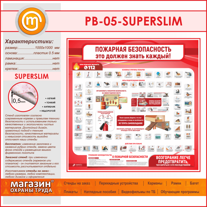 Стенд «Пожарная безопасность. Это должен знать каждый» (PB-05-SUPERSLIM) в Нижнекамске купить