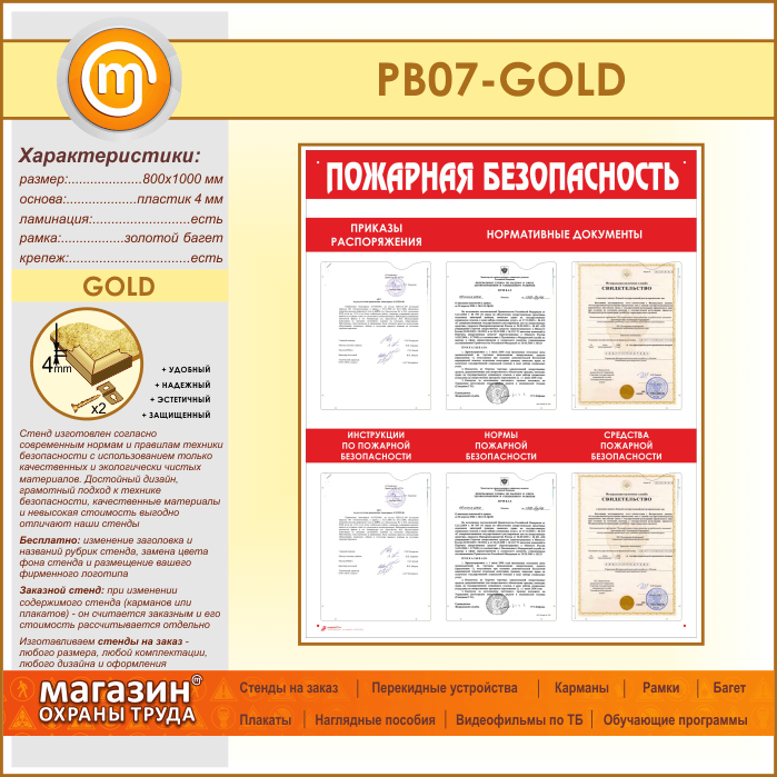 Стенд «Пожарная безопасность» с 6 карманами (PB-07-GOLD) в Нижнекамске купить