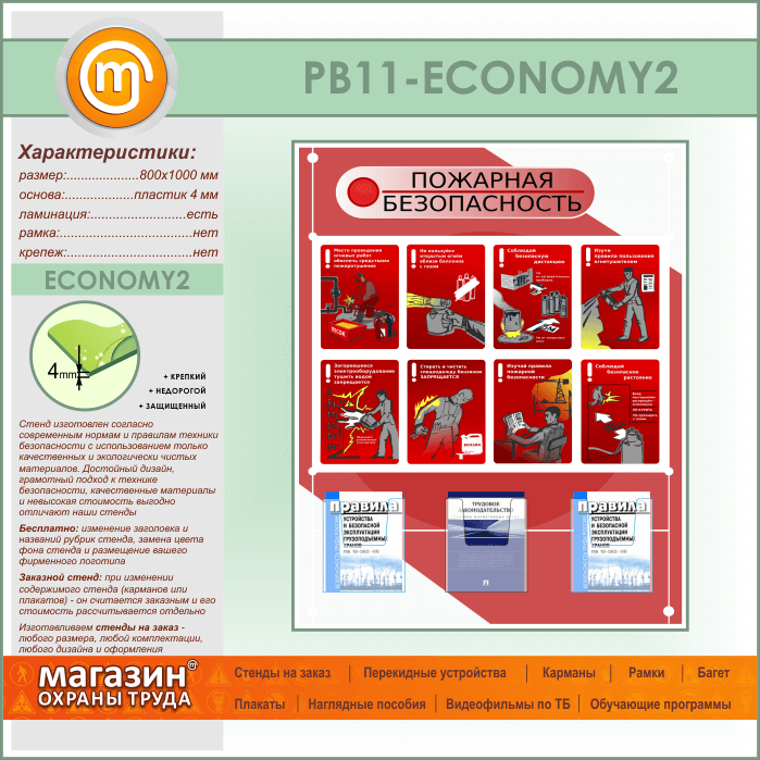 Стенд «Стенд пожарная безопасность в строительстве» с 3 объемными карманами (PB-11-ECONOMY2) в Нижнекамске купить