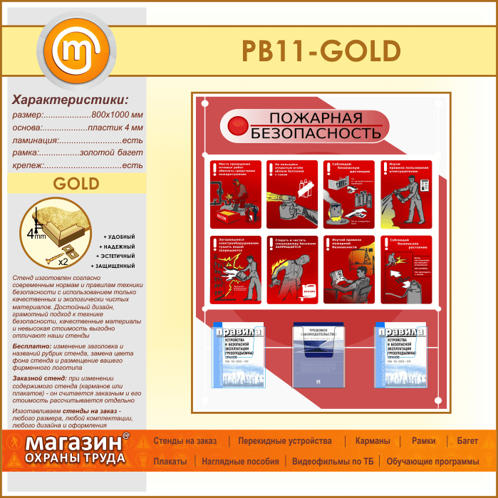Стенд «Стенд пожарная безопасность в строительстве» с 3 объемными карманами (PB-11-GOLD) в Нижнекамске купить