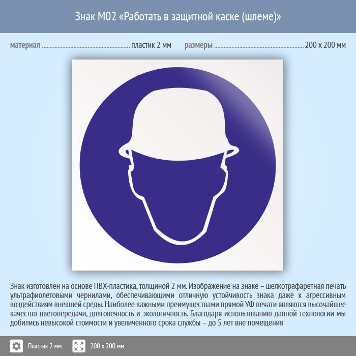 Знак M02 «Работать в защитной каске (шлеме)» (пластик, 200х200 мм) в Нижнекамске купить