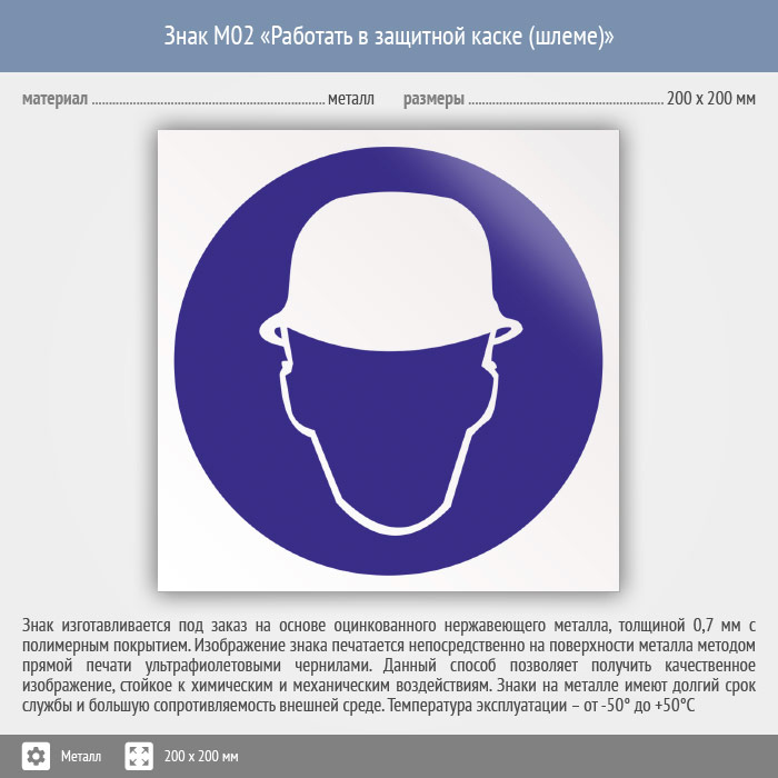 Знак M02 «Работать в защитной каске (шлеме)» (металл, 200х200 мм) в Нижнекамске купить