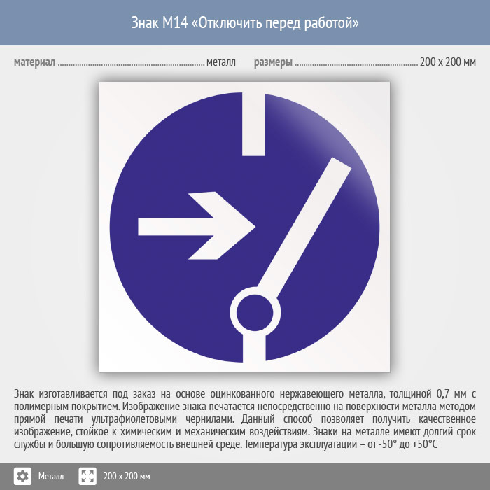 Знак M14 «Отключить перед работой» (металл, 200х200 мм) в Нижнекамске купить