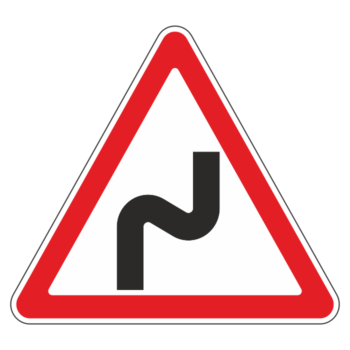 Дорожный знак 1.12.1 «Опасные повороты с первым поворотом направо» (металл 0,8 мм, III типоразмер: сторона 1200 мм, С/О пленка: тип Б высокоинтенсивная) в Нижнекамске купить